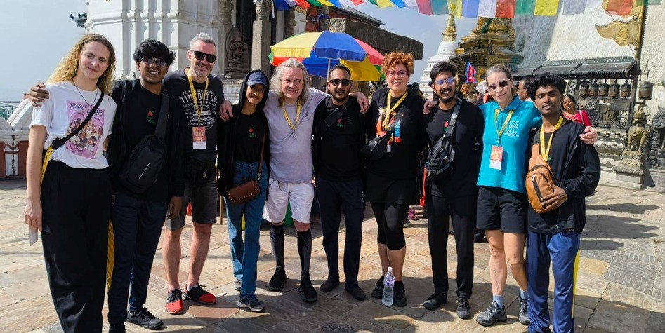 Na centrálním školním náměstí už nás vítá školní kapela, zaznívají projevy, jsou vítání slavní umělci, ale i kulturní mecenáši Nepálu. Pak, jak na olympiádě, nastupují umělci všech zúčastněných zemí pod státními prapory. Na pódiu se zastavujeme, zní česká hymna, zpíváme. Sedáme si mezi čestné hosty, nastupují Slováci, zpíváme s nimi, umíme jen první sloku.