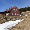 V sobotu jsem s Honzou, Fandou a Sixtou vyrazili prozkoumat sjezdy do Dlouhého Dolu. Mělo to parametry dobrodružného výletu. Prodírání se mezi stromy, svačina u vodopádu pod Červinkou a pak sestup na cestu k Výrovce. Když jsme se z lesa, kde nebyl žádný sníh vynořili s lyžemi na zádech, turistům málem vypadli oči z důlků. Ostatní šli pěšky z Děvína do Modráku, pak na Rychtrovky, na Výrovku a tam jsme se všichni sešli na polévce a bombardýnu. Pěší pokračovali po traverzovce (dosti náročný průstup klečí, sněhem a potoky) zpět na Děvín a my si dali nádherný sjezd ze Studny. Večer již byl společný s omladinou. Většina jí odjela a my se dali do hraní her. Tichá pošta s pantomimou vyhrála. O půlnoci nás napadlo se jít koupat do potoka. Tak jsme udělali koupací výpravu. Vlezlo nás tam 5. Super. A pak se krásně spalo.