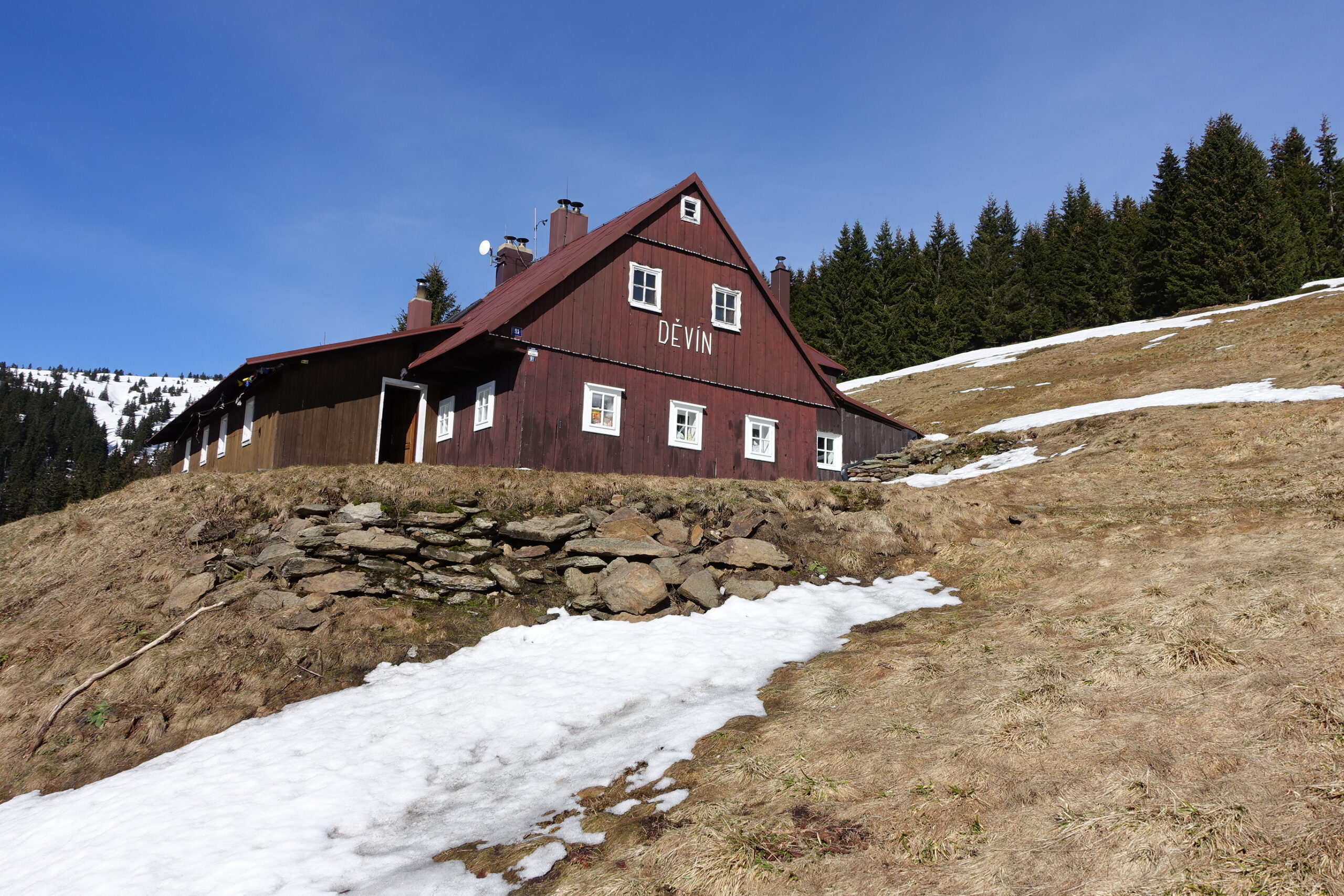 Díky Foltýnům a Vaškovi Zunovi a jeho rodině jsem přijeli na Děvín již ve čtvrtek 28.3. Předpověď na čtvrtek večer byla špatná, mělo pršet, naštěstí se to Peci vyhnulo a my vyšli v pohodě za sucha. Děvíňácké parkoviště bylo zablokované Němci, tak jsme zavolali policii a mezi tím jsme si domluvili parkování vedle na Studánce. Táhli jsme skialpy na zádech. Naštěstí Jana Foltýnová a Vašek nám vzali jedny lyže a dvoje boty, tak to Sixta přežila. Já a děti jsem šli rovnou na Děvín, ostatní se samozřejmě zastavili na Modrodolské chatě a skejsli tam až do 10 hod. Když konečně došli na Děvín zdatně posilnění tak jsem šla spát, protože mě bolel vytržený moudrák. To jsem ještě netušila, že u nás na Asistentárně bude spát Vašek. Tak mě svojí notně nabroušenou pilou zbudil asi o půlnoci a tak jsem se přidala k posezení v kuchyni a s Janou jsem to uzavřely ve 3 ráno. Já utekla na Hašišárnu, kde zase zařezával Peky. Ale vedle mě se hned ztišil a všichni mohli v klidu dospat.