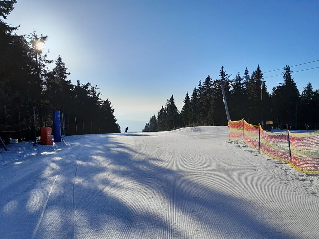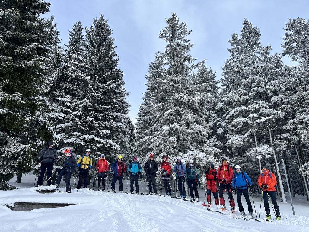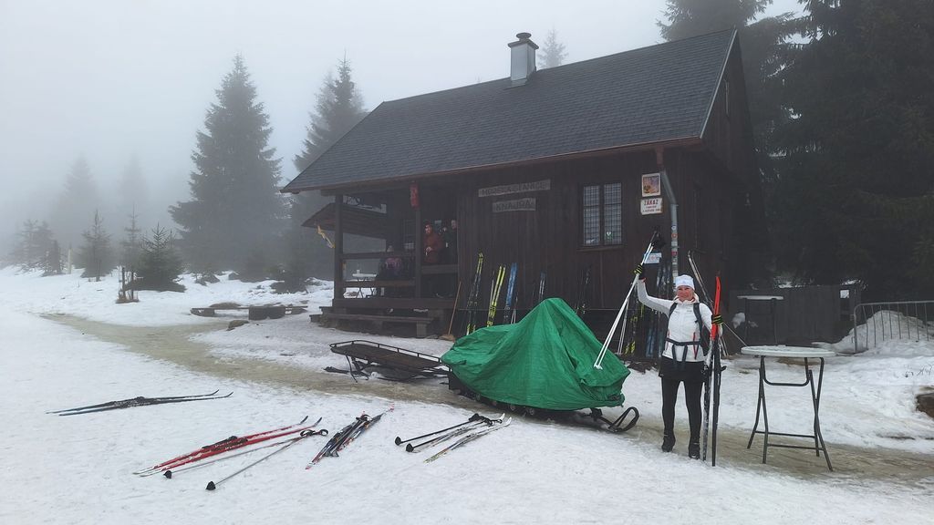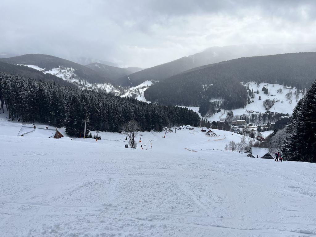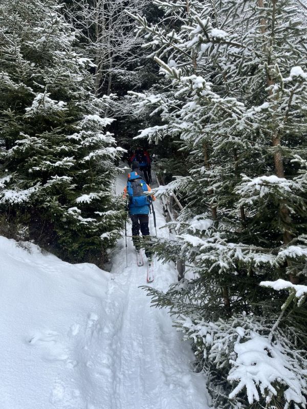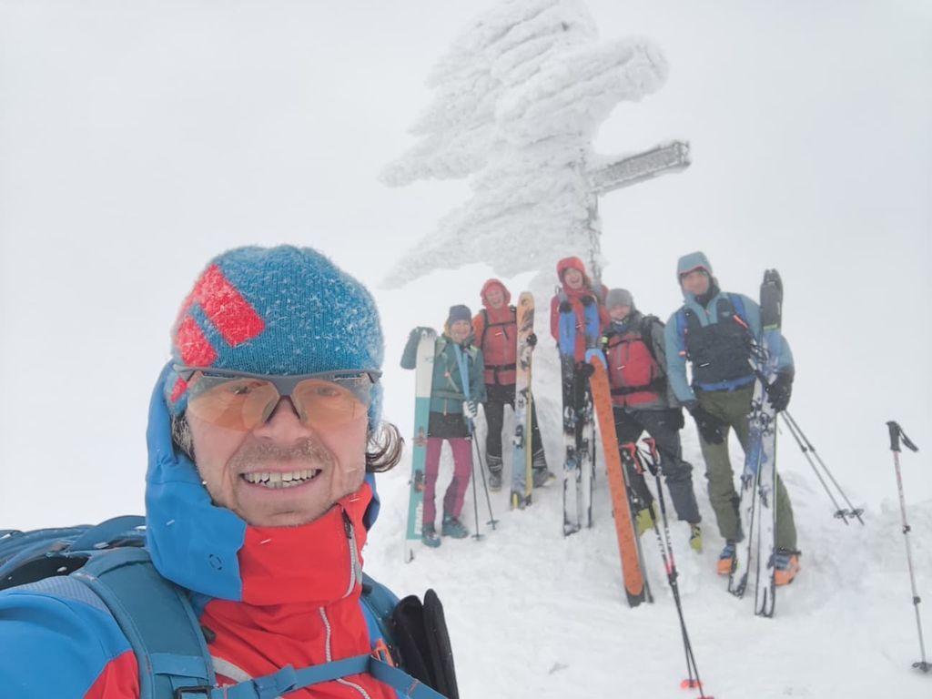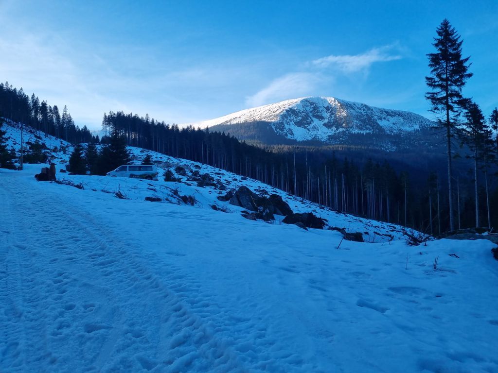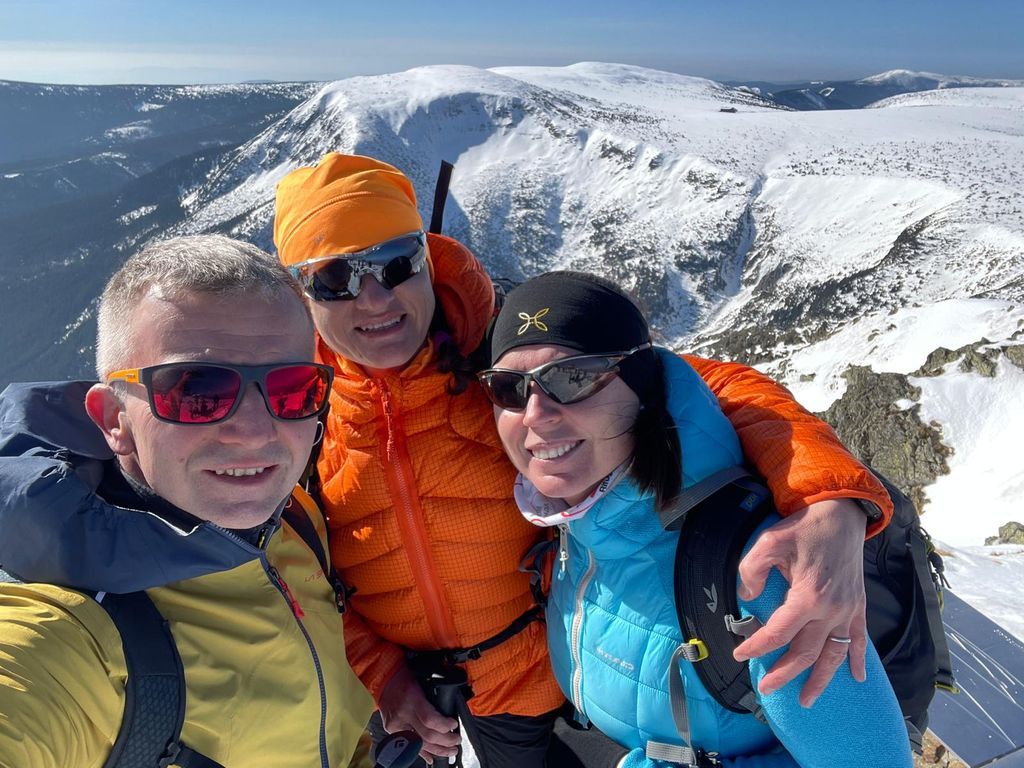 Ráno Marťa a Jagyč skialpy na Černé hoře nad Janským a Rudolfovým potokem.