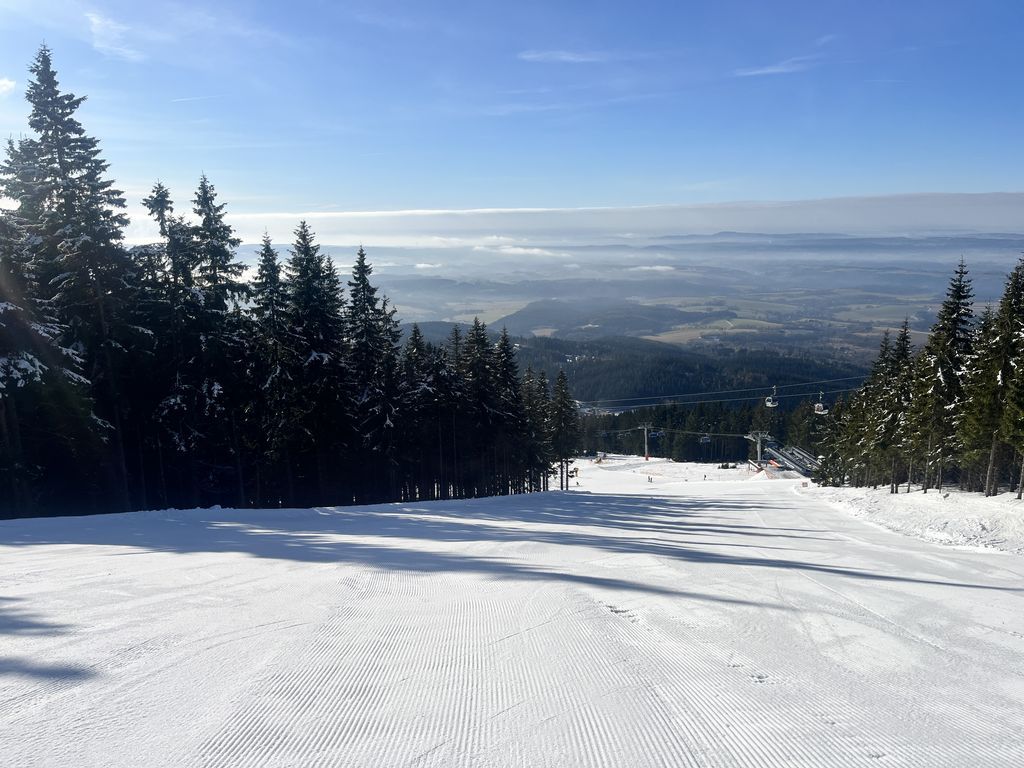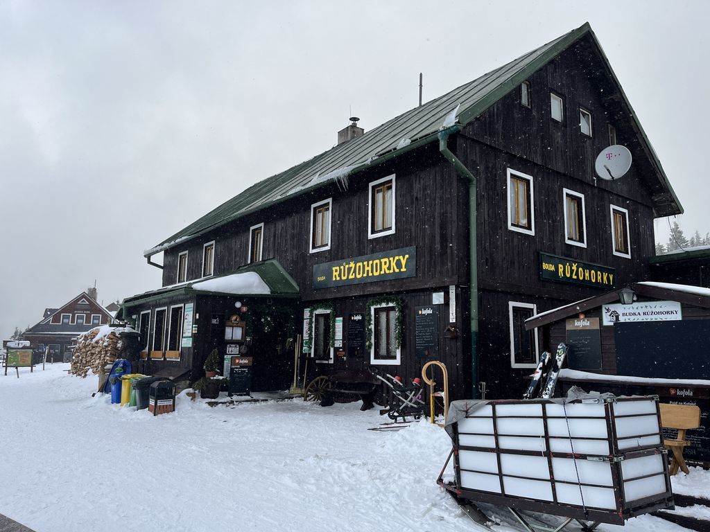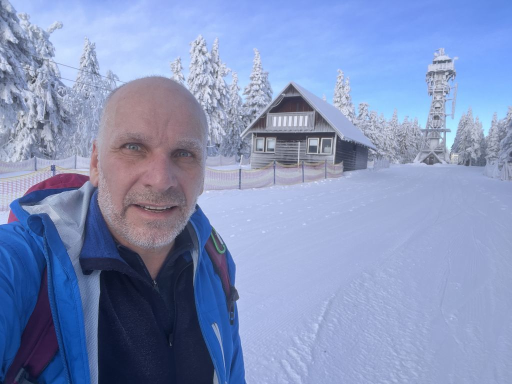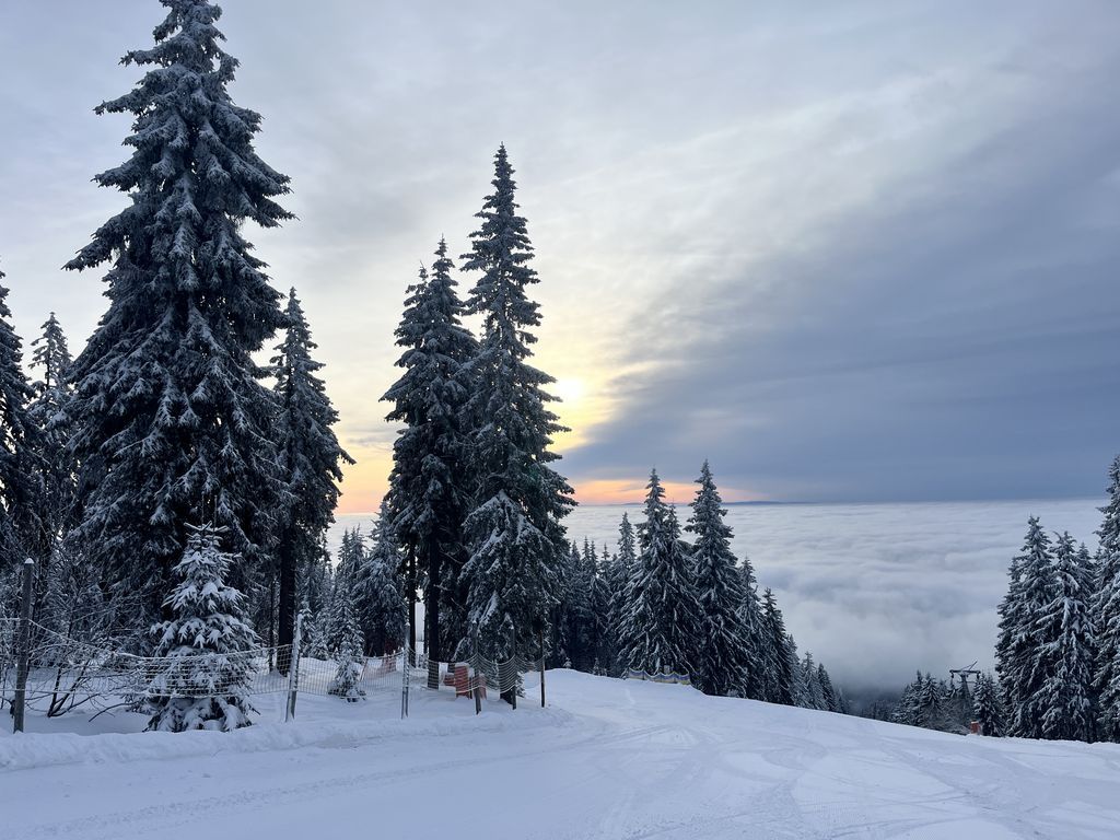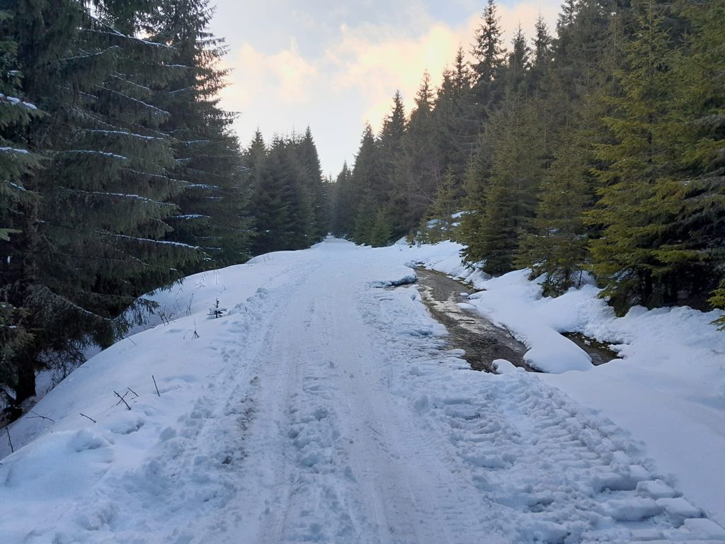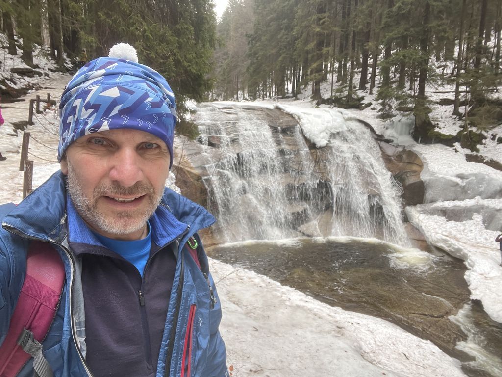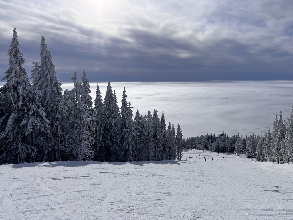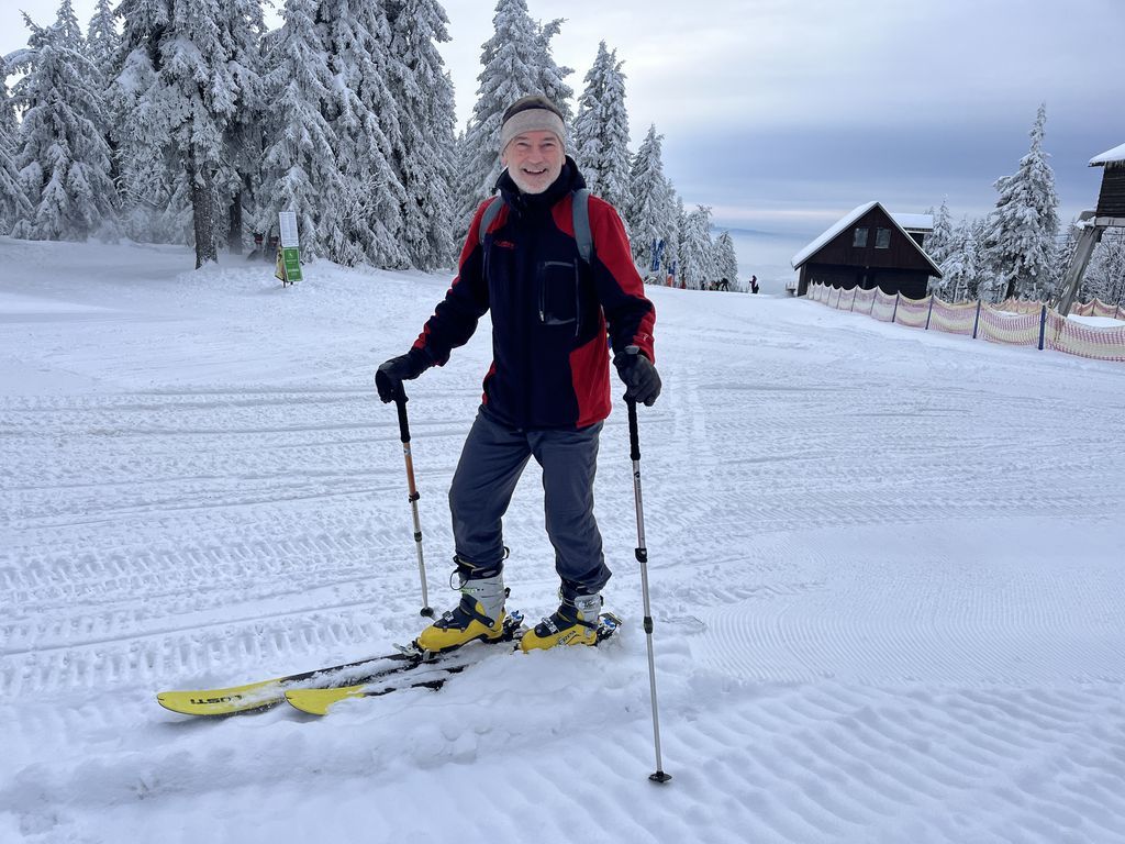 Ráno Marťa a Jagyč skialpy na Černé hoře nad Janským a Rudolfovým potokem.