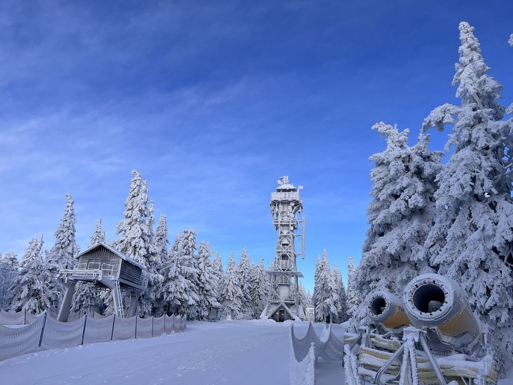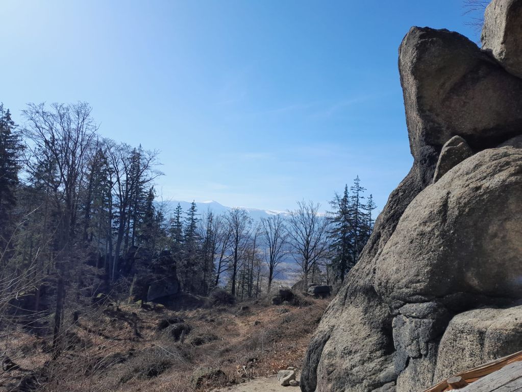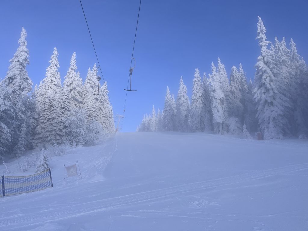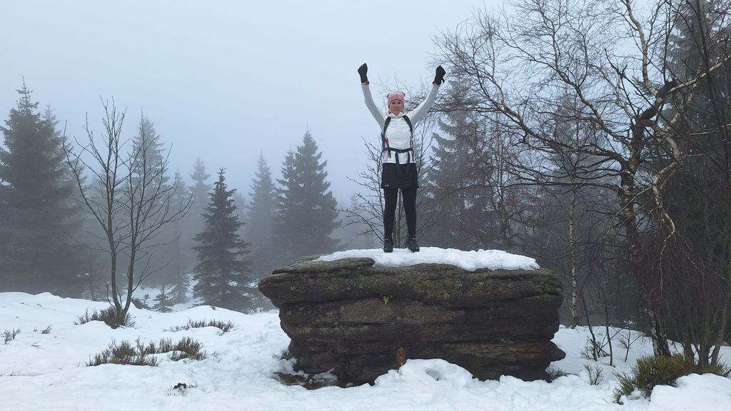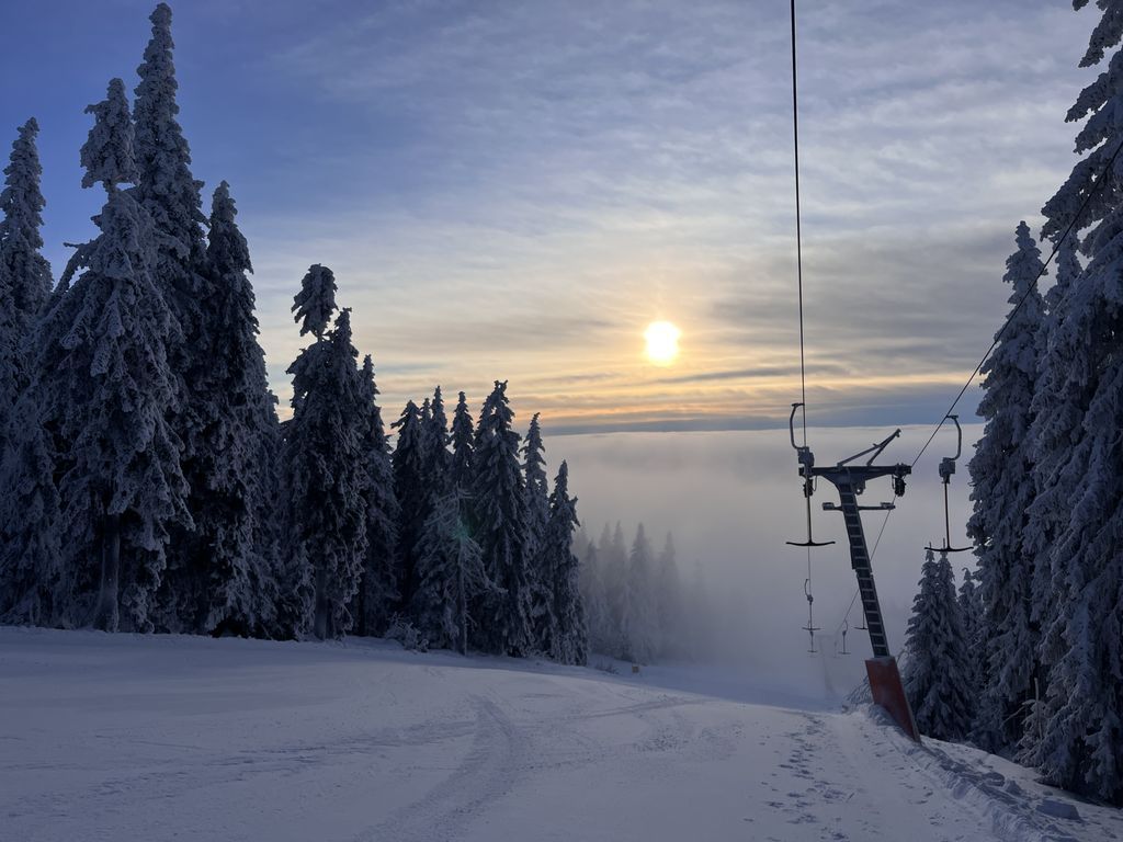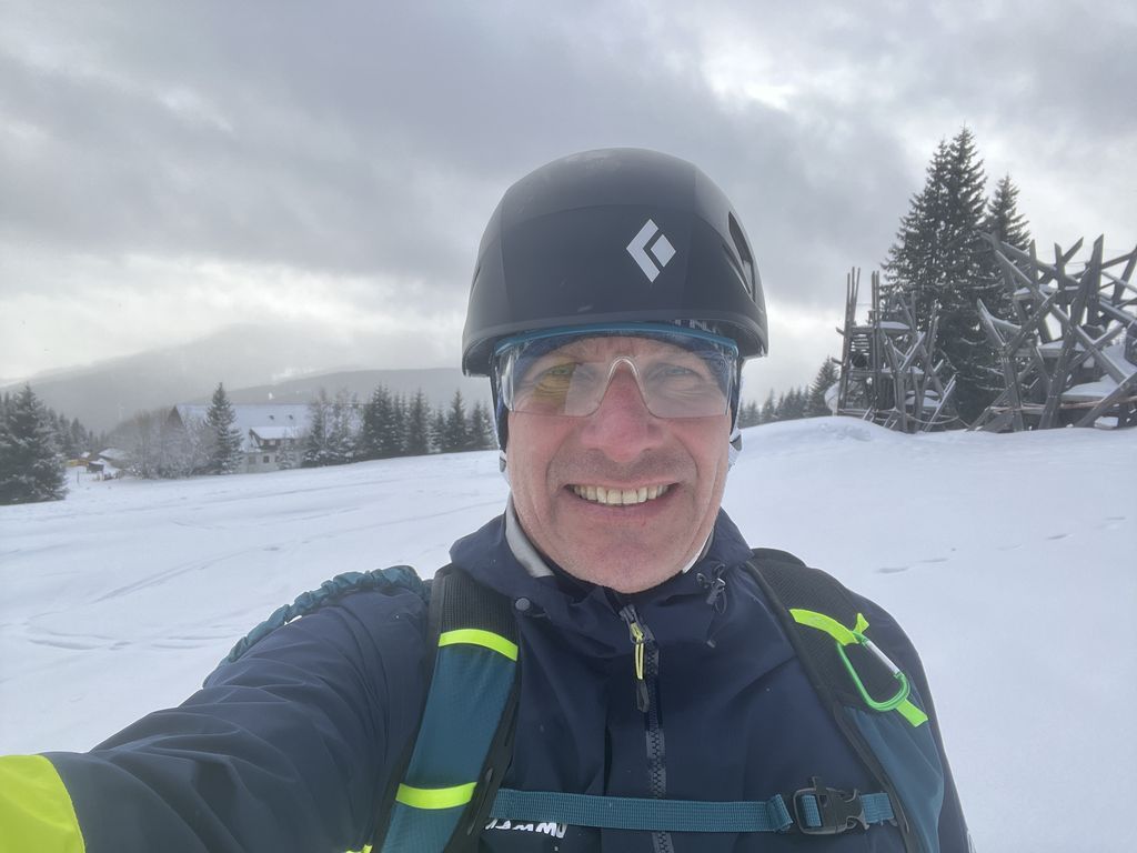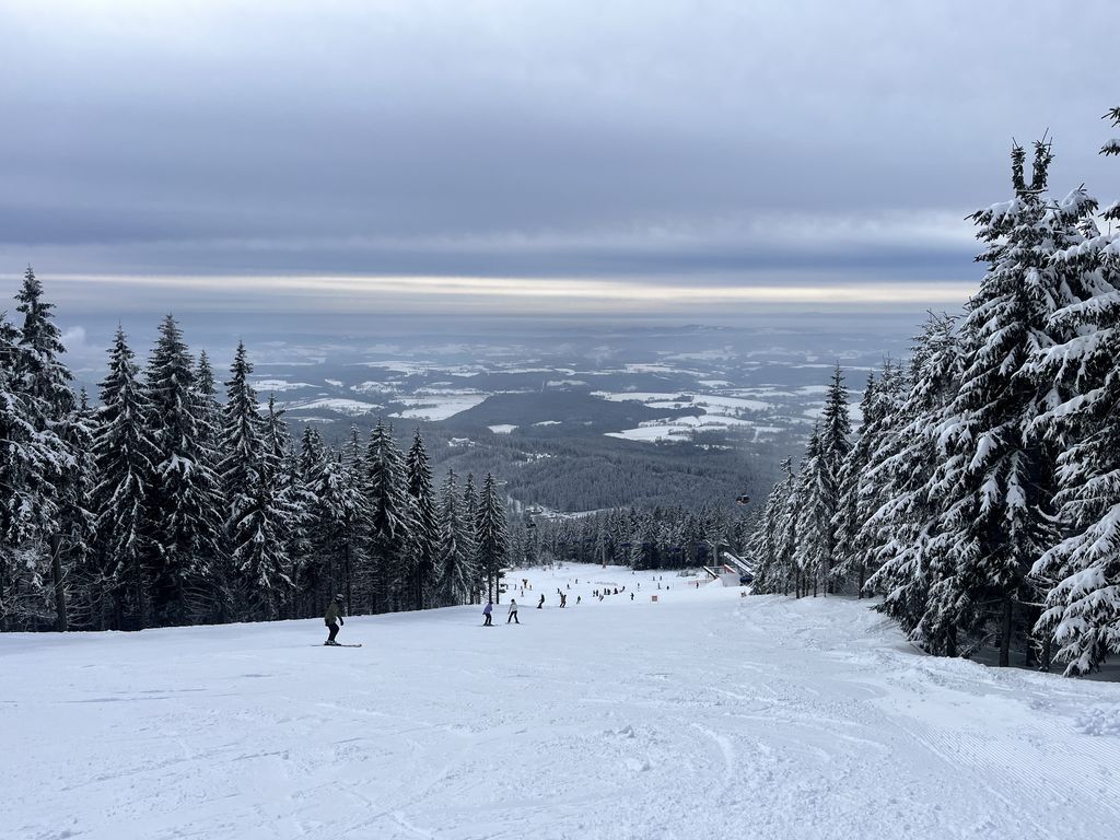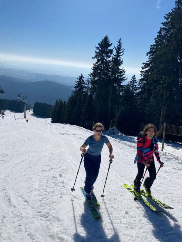 Ráno Marťa a Jagyč skialpy na Černé hoře nad Janským a Rudolfovým potokem.