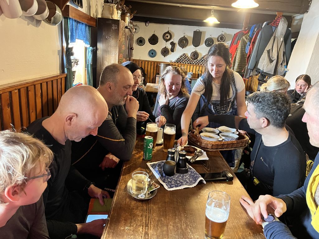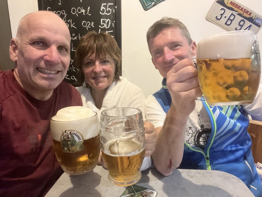 Po šmejdění v úžasné chatce za mrzký peníz jdeme do víru velkoměsta, resp. do finančním úřadem doporučené hospůdky, jenž byla tak báječně obyčejná s ještě báječnějším vedoucím. Zábava se rozjela naplno, bylo veselo až do nočních hodin. Poté i na chatce, ale to si již někteří nepamatují. 🙂