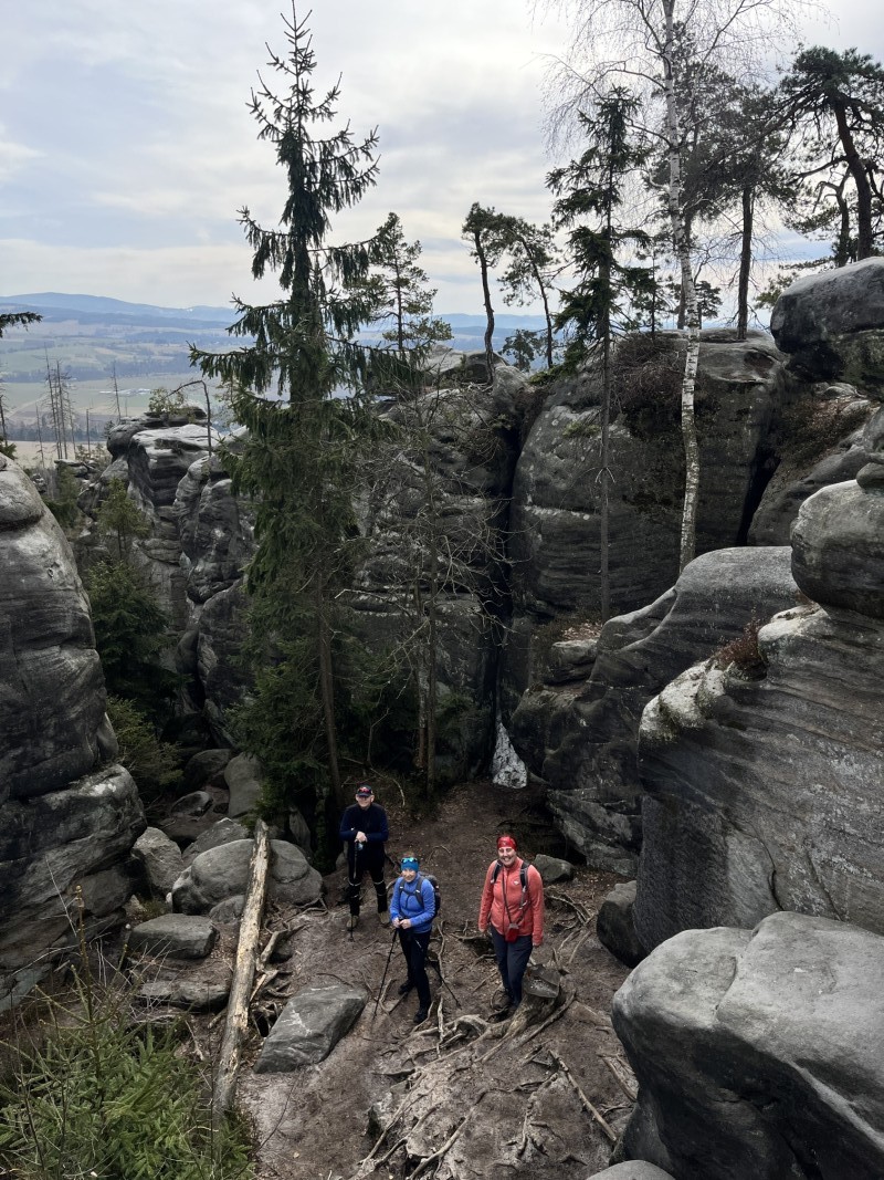 V neděli se nám nechce moc vstávat a tak si poležíme. Po snídani a rozloučení vyrážíme na výlet na Ostaš. František si zkusil lezení všemi možnými způsoby a my ostatní si užíváme procházku a krásné počasí. Ještě oběd a pak hurá domů.