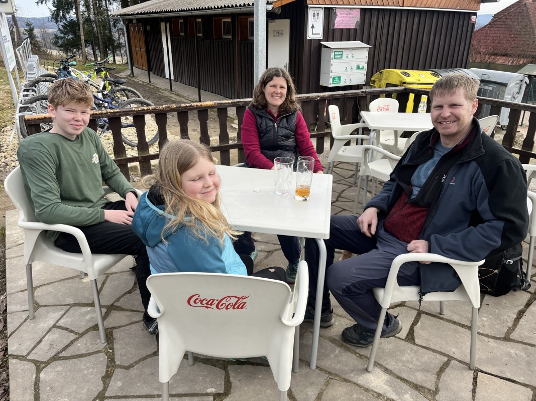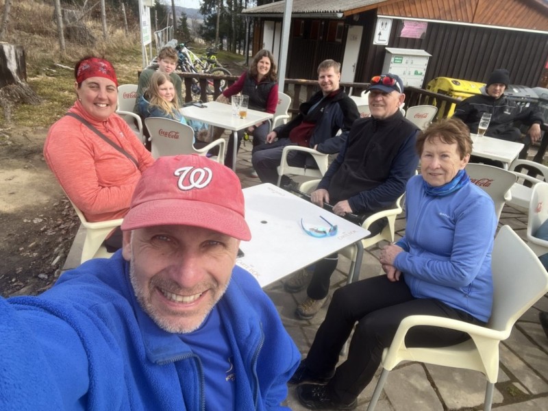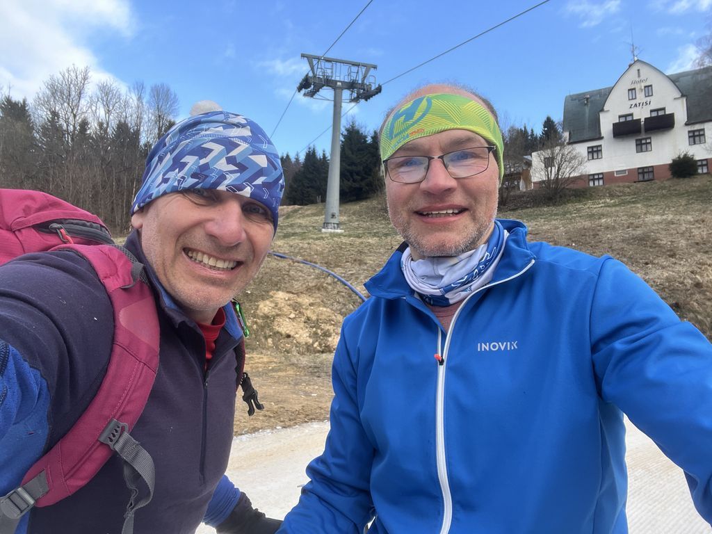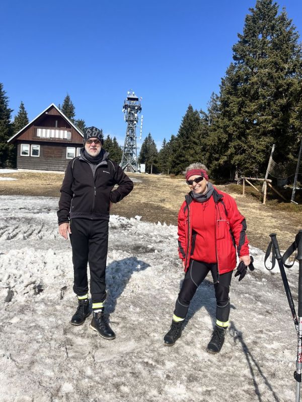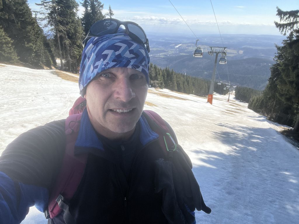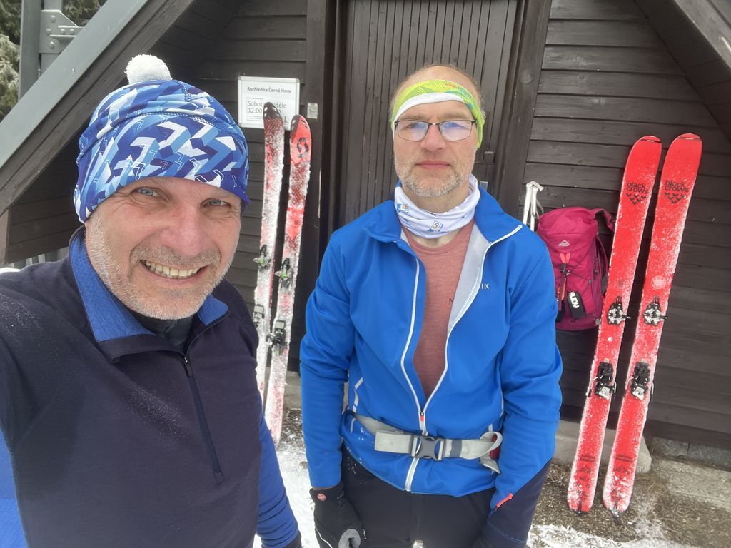 Podruhé nás šlo 12, což mě mile překvapilo. Další pohodový, veselý, povídavý, vzpomínkový výstup, za pěkného počasí. Nahoře překvapení v podobě Nadi a Fandy na elektrokolech, což zasluhuje palec nahoru. Po Goganovi další cyklo nadšenci, bez ohledu na led a sníh na cestě. V bufetu bylo fajn, rozlučka na parkovišti proběhla v 13:00 a poslední pohled na trošku bílou Černou horu byl z mého oblíbeného místa u Hrádečku.
