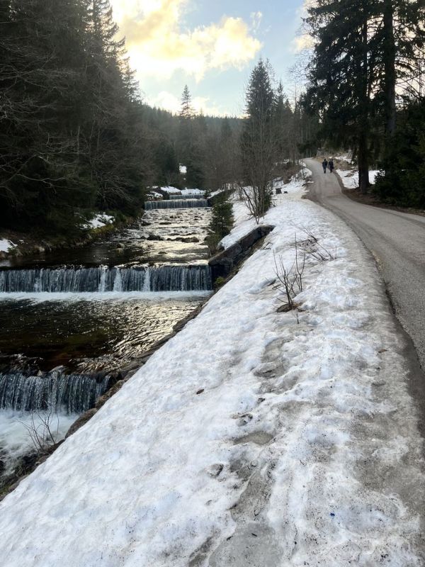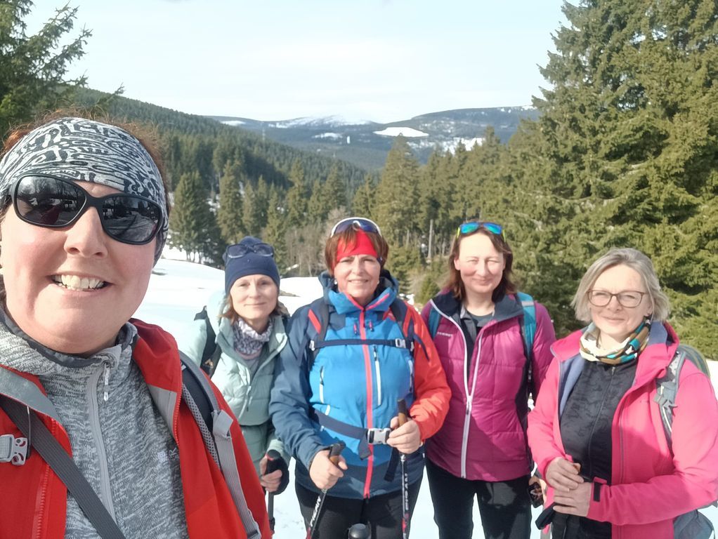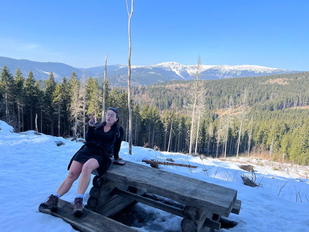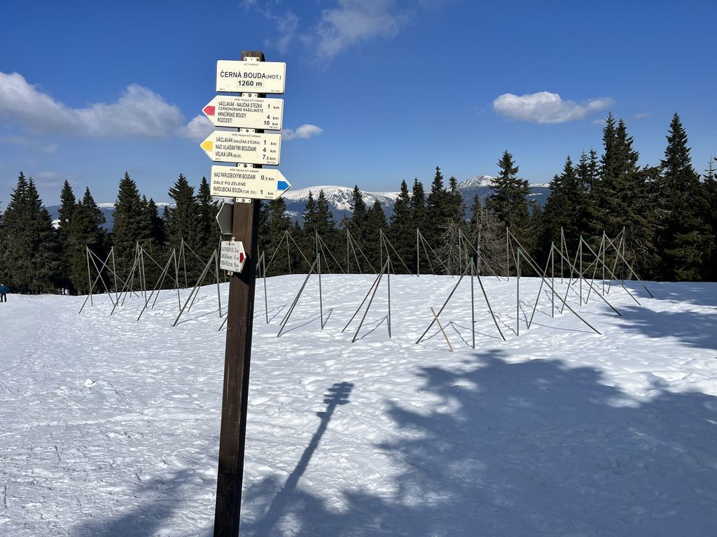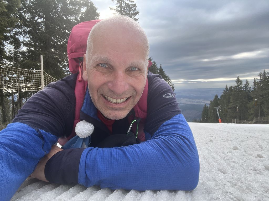 Podruhé nás šlo 12, což mě mile překvapilo. Další pohodový, veselý, povídavý, vzpomínkový výstup, za pěkného počasí. Nahoře překvapení v podobě Nadi a Fandy na elektrokolech, což zasluhuje palec nahoru. Po Goganovi další cyklo nadšenci, bez ohledu na led a sníh na cestě. V bufetu bylo fajn, rozlučka na parkovišti proběhla v 13:00 a poslední pohled na trošku bílou Černou horu byl z mého oblíbeného místa u Hrádečku.