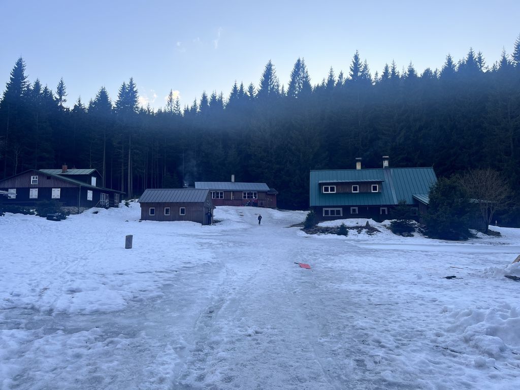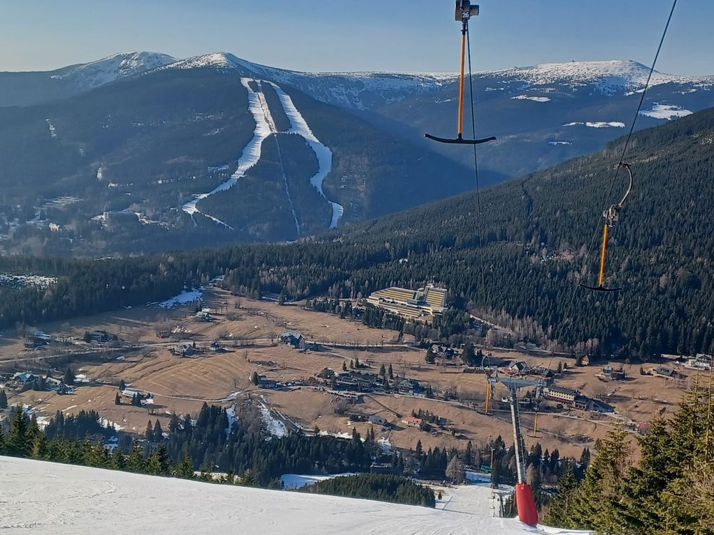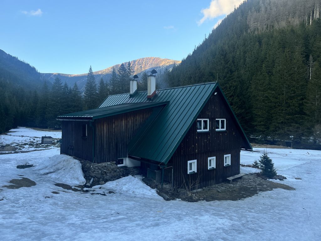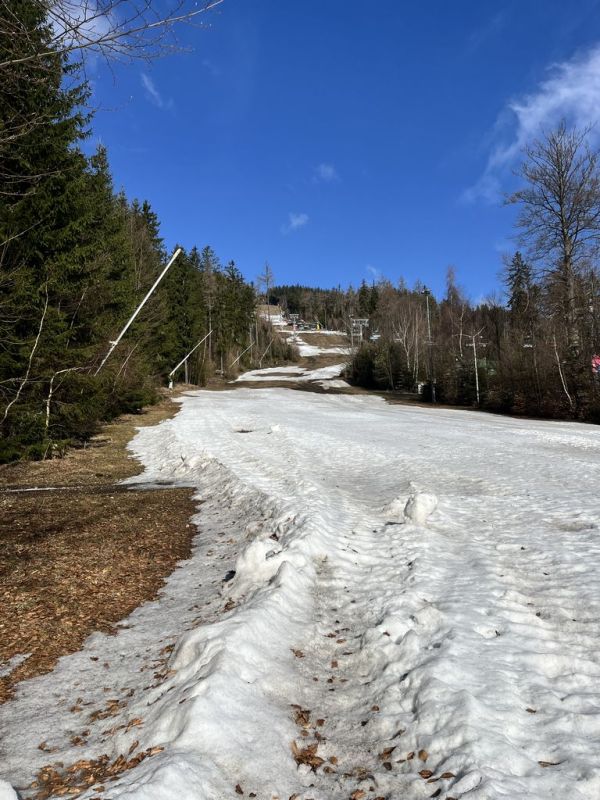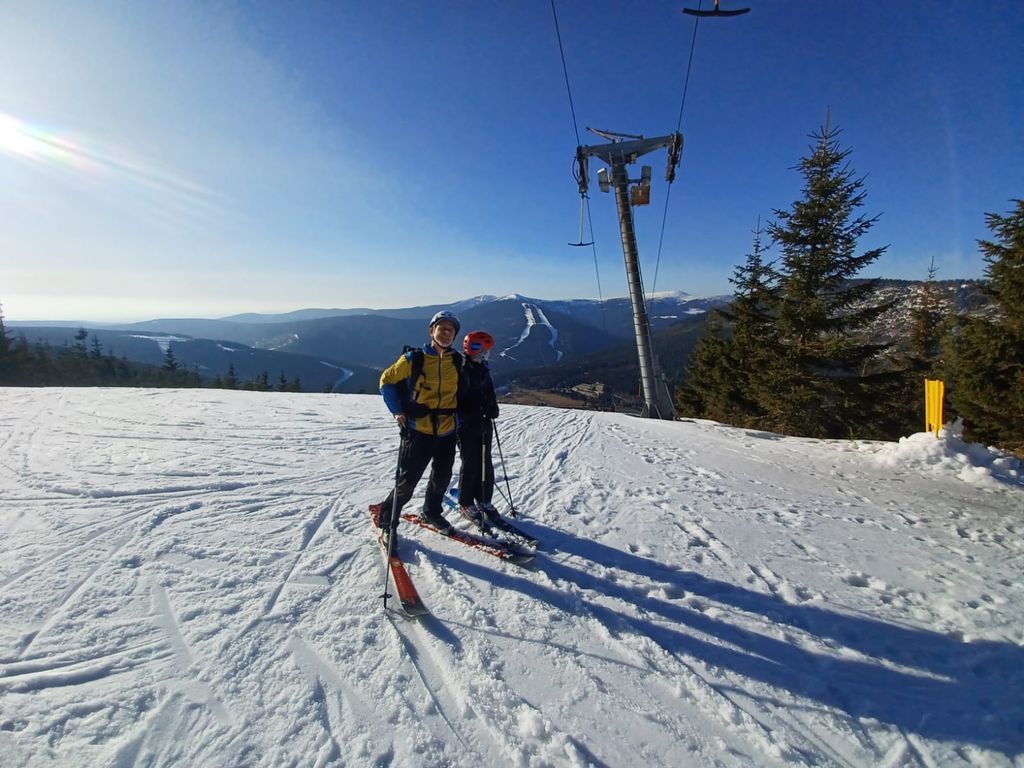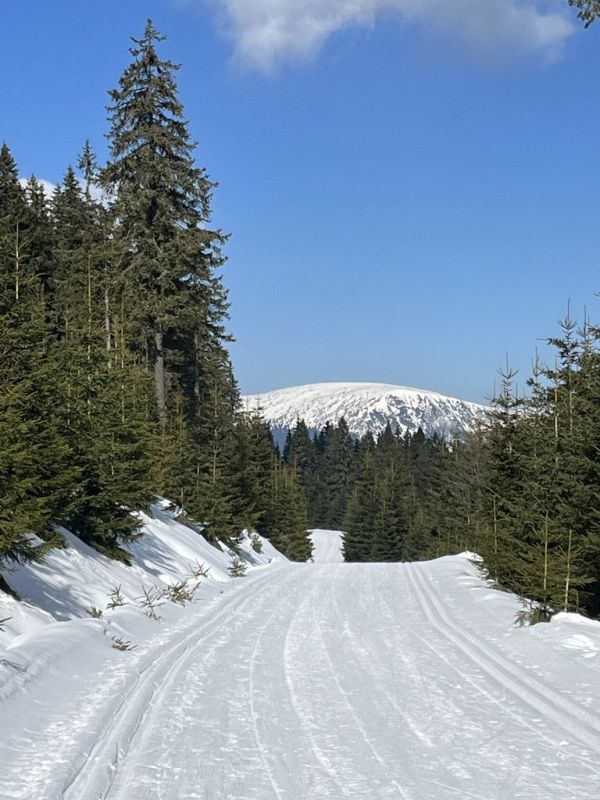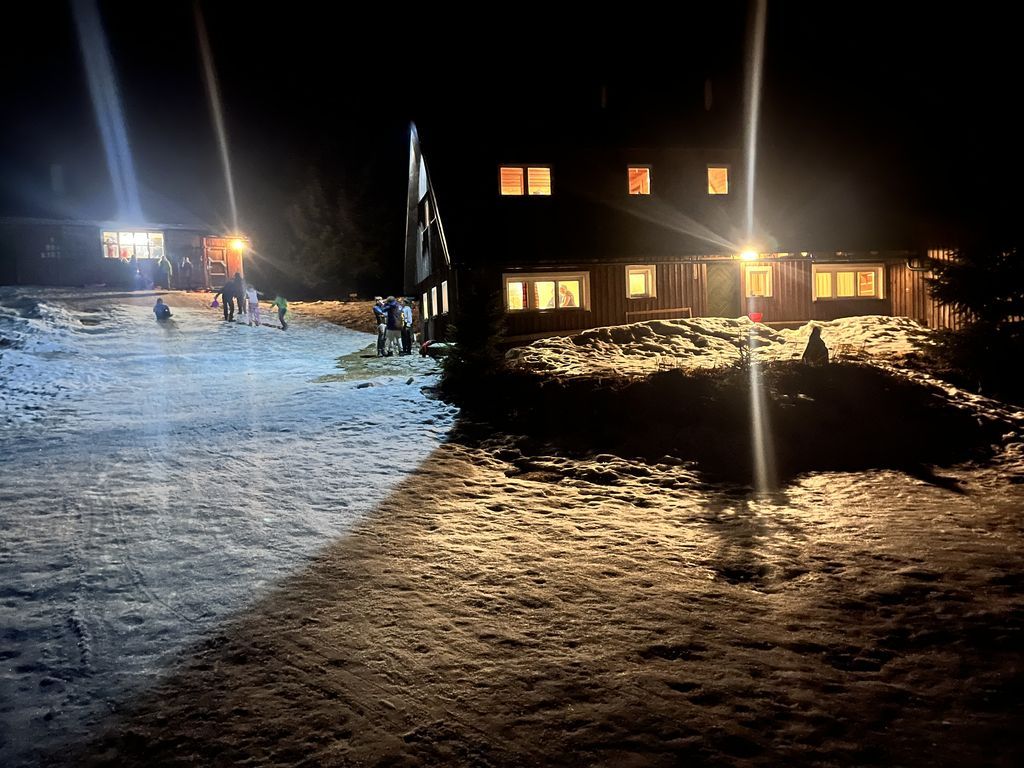 Zimní radovánkový víkend v Obřím dole, 13.-15.3. S ohledem na končící nevalnou zimu a nejasné sněhové podmínky nejen pro prťata, ale hlavně skialpinisty, jsem nějakou větší návštěvnost nečekal, ale pro mě je hlavní, že tam budu já. A sám jsem nakonec nebyl: ze Škrovádu dorazila skvělá parta holek s dětmi, které si ze mě udělaly dědu, já si v devět zašel do Pece pro Šímu, přičemž jsme loupli plzničku v Hořci, a v jedenáct překvapil Libor, jenž to vzal s čelovkou po hřebenech. Byl to veselý večer přes půlnoc a nejen já jsem se těšil na Sněžku.