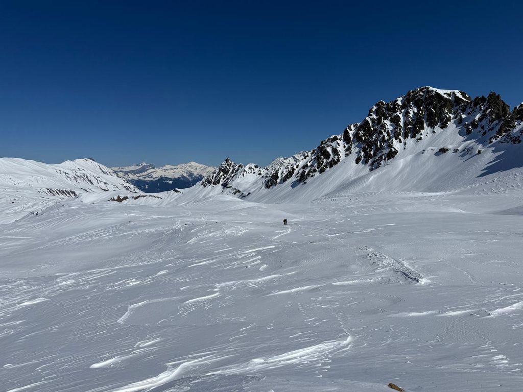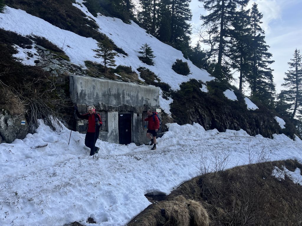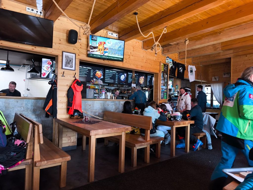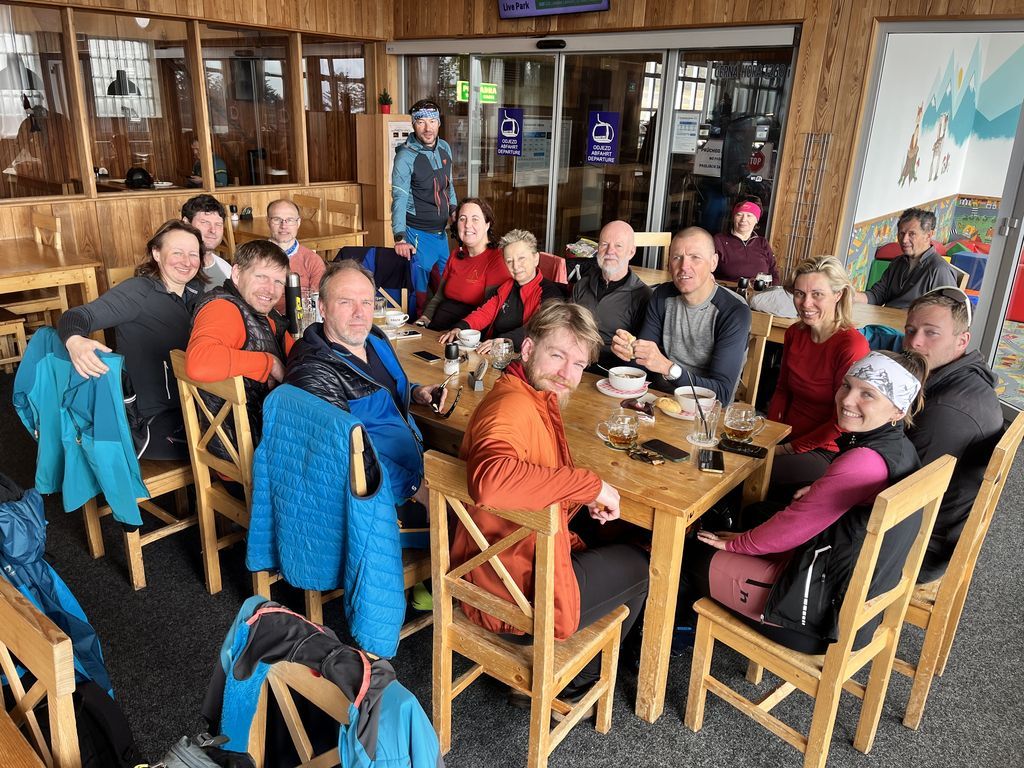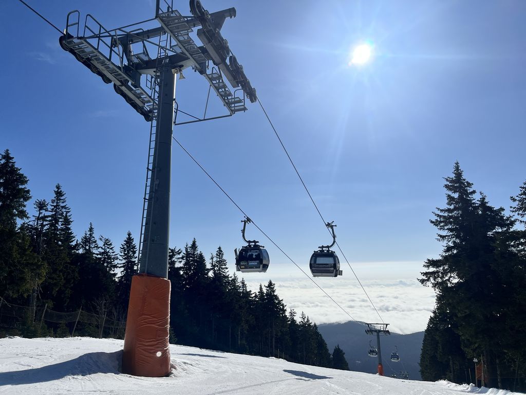 Po noci krátké a po …, nezbylo než se probrat, najít střízlivého řidiče a vyrazit na první ranní start v sedm hodin. Snídaně cestou, vyprošťovák na parkovišti, foto u lanovky. Optimismus v dobrý výkon nám vlil do žil Jagyč, jenž si dal výstup ještě před námi. Šlo se kupodivu pěkně, Jirka s Lukášem pěšo, já se Zdeničkou na ski. V neuvěřitelném čase 1:10, tedy s ohledem na tu pohodu během výstupu, jsme dosáhli kóty v podobě starého sloupu č. 8. Tentokráte vrcholové pivko, nasadit prkna všeho druhu a hurá za druhou skupinou.