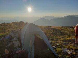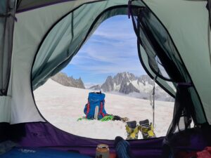 Čtvrtek je rest, tak plánujeme, pojedeme na lanovku na mezstanici na Plan de l’Aiguille a ejhle. Good mornig start je plný… tak změna. Rychlá koupel v řece, uvařit, zabalit, doběhnout na poslední lanovku s krysou na zádech…. A v kolem šestý stojí stan 20min od mezistanice Plan du Agile. Večer se jdeme projít na nástup a pro vodu….