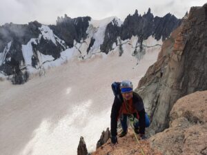 Aig. Du Peigne, Gendarme Rouge – Postcriptome, 6c, A0, 300m, 8délek, pak odjezd.