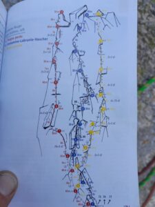 Sobota, již jen něco kratšího, úderného…Aig. Du Peigne, Gendarme Rouge – Postcriptome, 6c+. Nástup po zmrzlém sněhu bez maček (se nám je nechtělo tahat od stanu) vtipnej. 3 délky na průběh nás bezpečně ztratil…. Následují blbě čitelné plotny, ještě horší plotny, naštěstí slušně zajištěné, spárky, plotny, spárky…po 8 délce stačilo. Dle plánu slaňujeme dolů, balíme stan a dolů. Koupačka v řece, parkoviště na dálnici u Ženevského Jezera na 1,5hod. Spánek v půlce Německa.