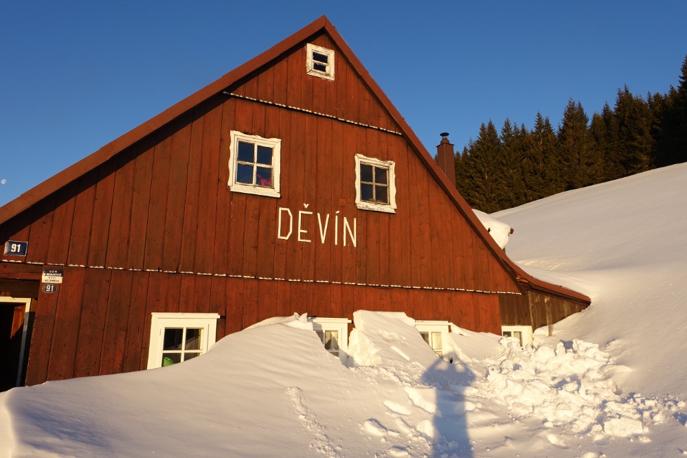 Děvín začal v Peci pod Sněžkou na Skialpfestu. Opět tam byla Alenka Zárybnická s knihou „Laviny v Čechách“ a znovu jsme potkali Elišku Patáčovou- Fenclovou. Moc jsme si to užili, společně se vyfotili s autory knihy a na chatu Děvín jsme dorazili až v jednu ráno. Tam již kralovali Běláci, velký Jirka, Honza Šafář a část naší omladiny co přišla s naší Alenkou.