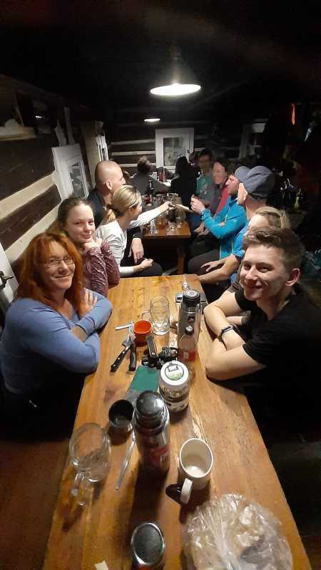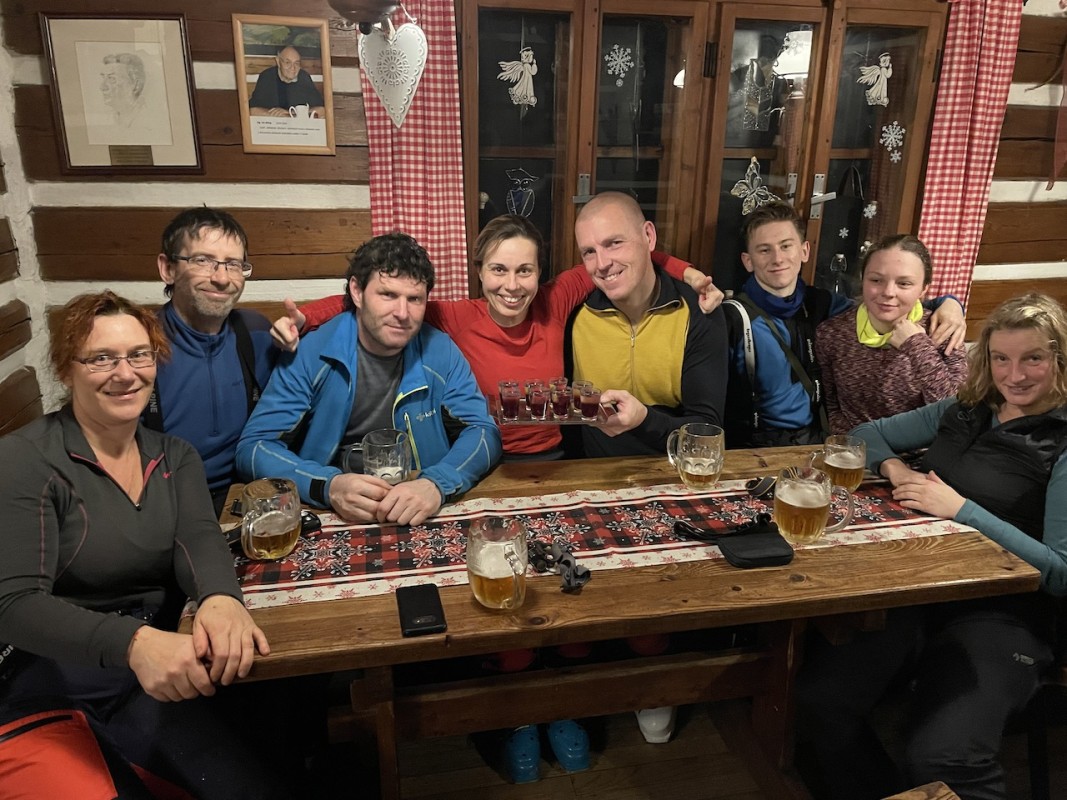 Účastníci zájezdu: Mára, velký Jirka a Adéla, Pekárci 5x+ Alenky 2 kamarádi, Ondra a Danda, Sixta, Čejpík a Zelí a s Mirečkem . V sobotu dorazil František Máňa a Maruška Foltýnovic. První zastávka Modrodolská chata nás opět přitáhla svou velkou přitažlivostí. Proběhlo pár komunistů i píveček. Omladina naštěstí šla napřed topit. Déšť se naštěstí změnil ve sníh, ale nahoře fučelo a bylo slušné jedničkové počasí, které vydrželo i v sobotu.