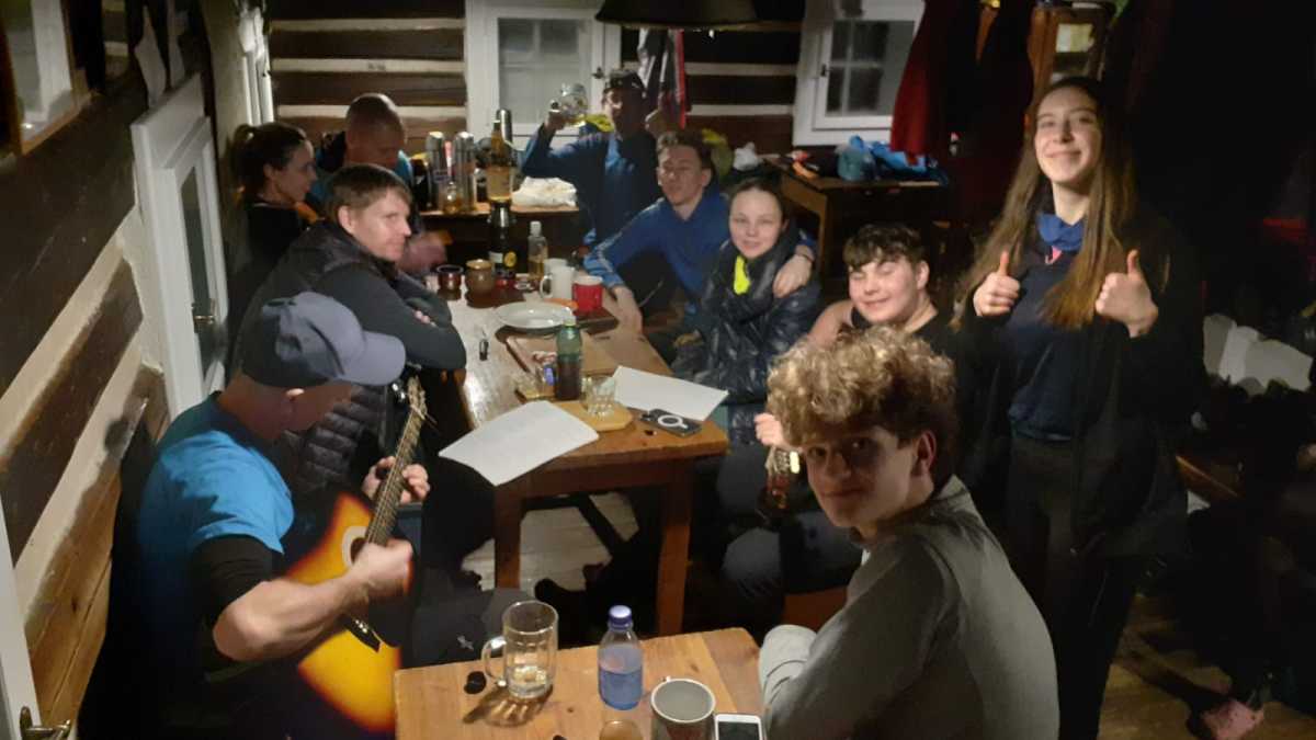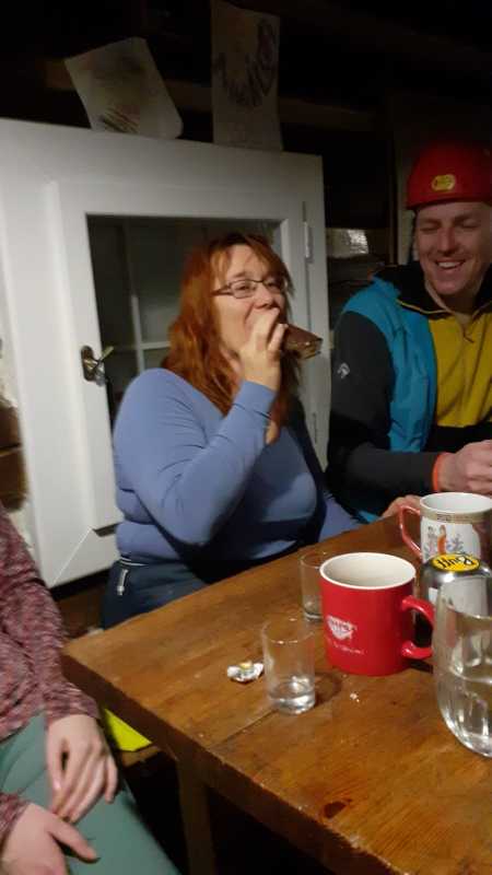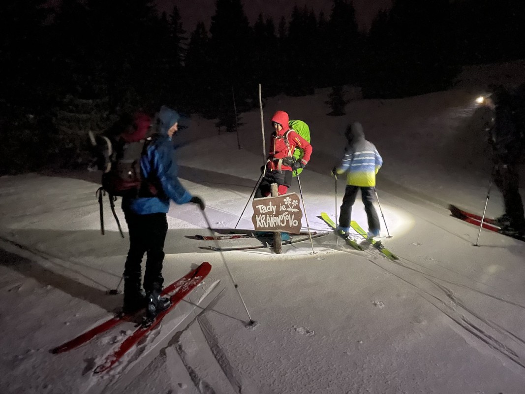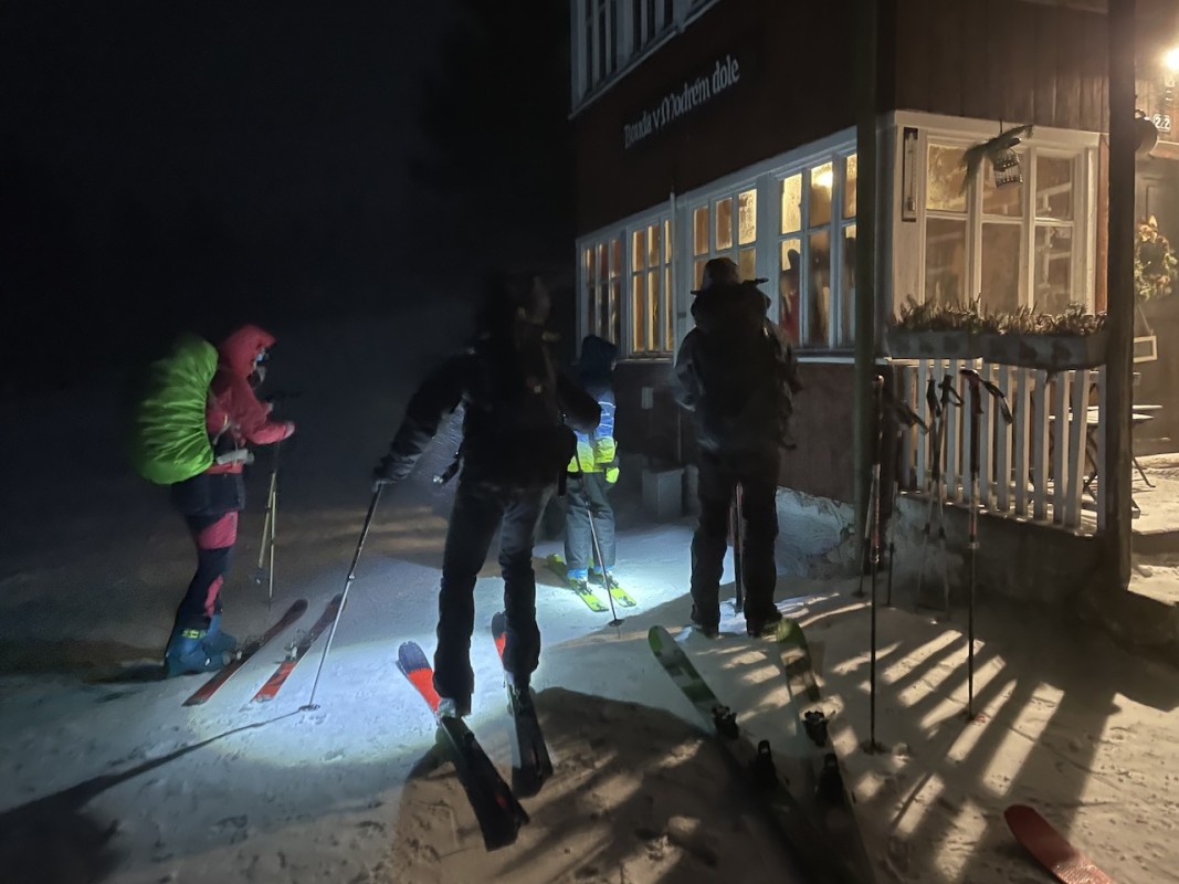 Večírek se protáhl do brzkých ranních hodin a Zelí s Jirkou se postarali o trenéra Peky Peky, aby ráno moc brzo nebudil a ve 3 ráno si dali malý sjezdík od šutru k chalupě.