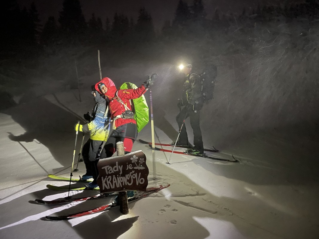 Trenér Peky Peky pak naštěstí budil až v 8 ráno. Brzy ráno Došel prý František a s Márou v hnusné metelici mastili do Rokytnice nad Jizerou Fandit Bořkovi na závody “ O dřevěného Krakonoše“. Bořek vyhrál.