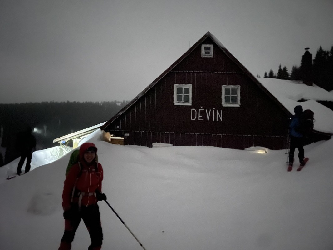 My na chatě jsme se v klidu probrali a dali jsme pár sjezdíků od šutru k potoku za dost velkého větru. V lese byl nejlepší sníh i počasí. Adélka s Jirkou na oběd odešli na Výrovky a zbytek papal z vlastních zásob na chatě. Zelí s Mirečkem udělali výlet do Pece a pak přes Výrovku, kde se přidali na krátké „4 hodinové“ občerstvení k Márovi a Františkovi, kteří zapíjeli Bořkův úspěch. Na Děvín dorazili v 10 večer, kdy už se pomalu formovala záchranná akce. Máňa s Maruškou Foltýnovou dorazili kolem 7 večer a novým proviantem, tak jsme je vřele přivítali. Proběhly tanečky a opět skvělá zábava do ranních hodin.