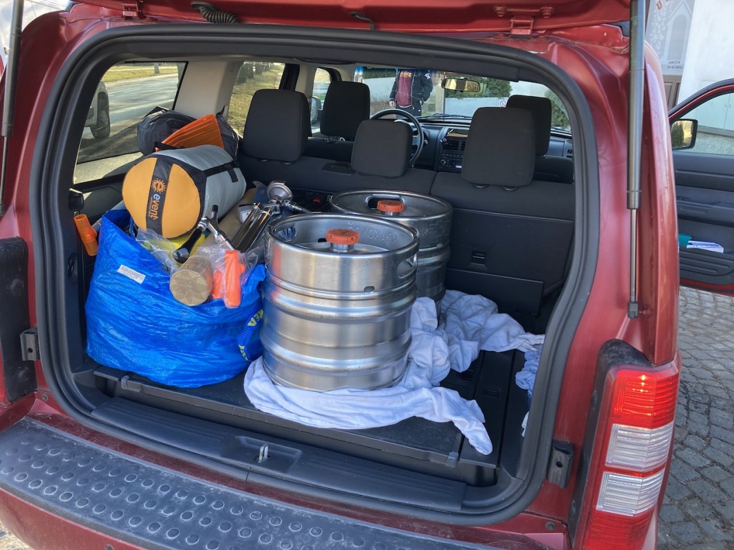 Radostně dáváme první pivko. Chvíli na to přijíždí Marcel a Čejpící v 5 kusech. 5tým není pes, ale kamarádka dětí, kterou prý za něj nevyměnili. V 20:15 přichází Šíma, který po přivítání vytahuje dary pro Běláky pro maskování v zakázaném terénu.