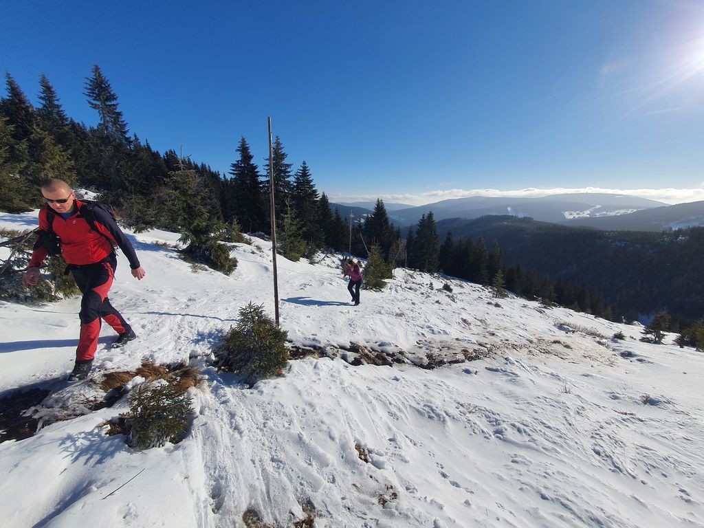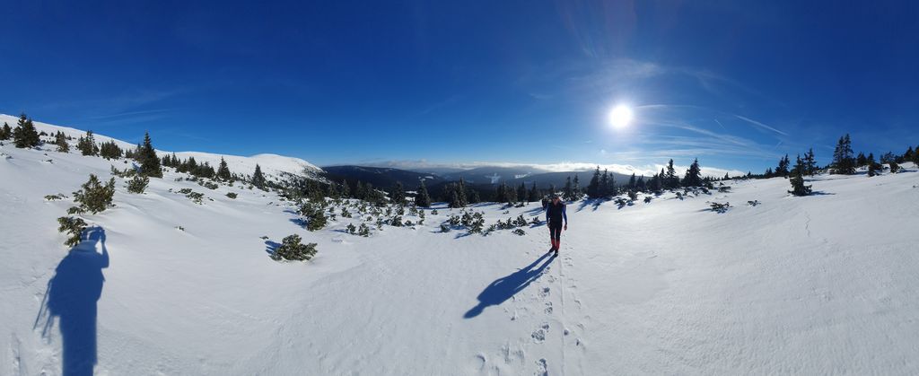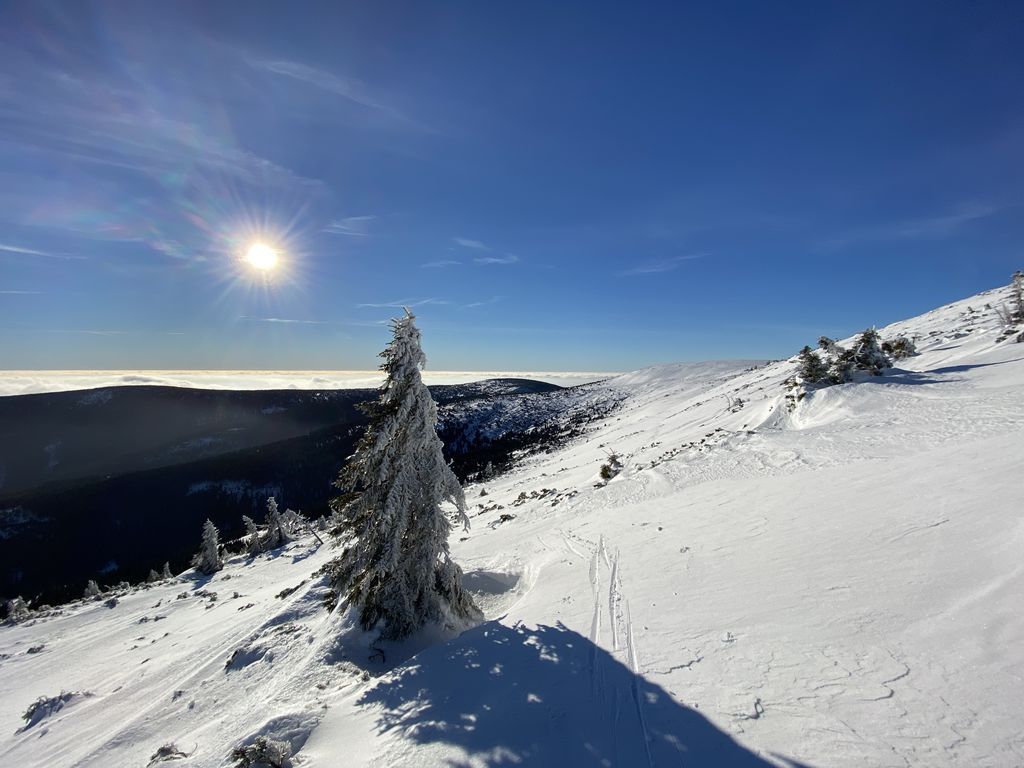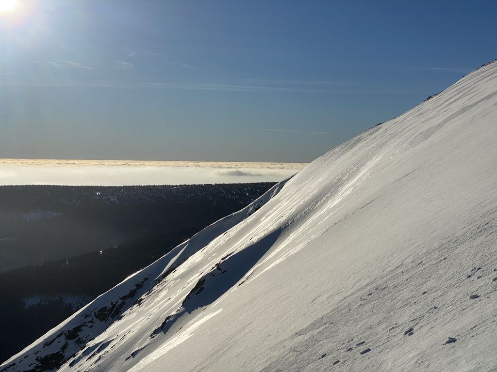 I přesto můžeme tento víkend prohlásit za skialpový, neboť Libor v pátek vyšlápl a sjel Černou horu po sjezdovce. V sobotu se přihnal statečně Bosák ze Studny. Prý krásný cca 300m sjezd laviňákem, než potkal první kleč. V neděli odvážný František, který udolal ledovku na Výrovku a po hřebeni se doklouzal do Pece. A další stateční a po skialpech prahnoucí nadšenci, kteří šli kličkovat mezi lyžaře do Pece. Medaile patří bez diskuze Bosákovi za statečnost ve volném terénu, kde té volnosti až tak nebylo.
