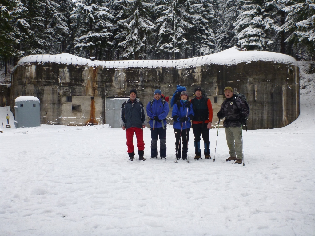 V hospůdce nám Žalud vypráví jak nás objevil na webových stránkách, zkontaktoval se s Františkem a je tu. Také se přiznal, že je starší než-li Cyr a tudíž si Cyr během táboření nemohl příliš stěžovat na svůj věk. Každopádně sportovní výkony obou seniorů jsou obdivuhodné:) Po příjemném posezení v hospůdce vyrážíme před 23 hodinou směr Pevnost bouda. Cesta vede lesem, chvílemi i sněhem, hvězdy nad hlavou, je krásně. Klid noci ruší jen Františkovo halekání, totiž jako jediný a následně i Cyr, našli cíl dnešní noci. S Honzou a Žaludem přicházíme k Pevnosti bouda z opačného směru. V turistickém přístřešku už František rozdělal oheň a Žalud dodržel svoji tradici – smažená vajíčka k dost pozdní večeři. Je po 1 hod. a uléháme do spacáku.